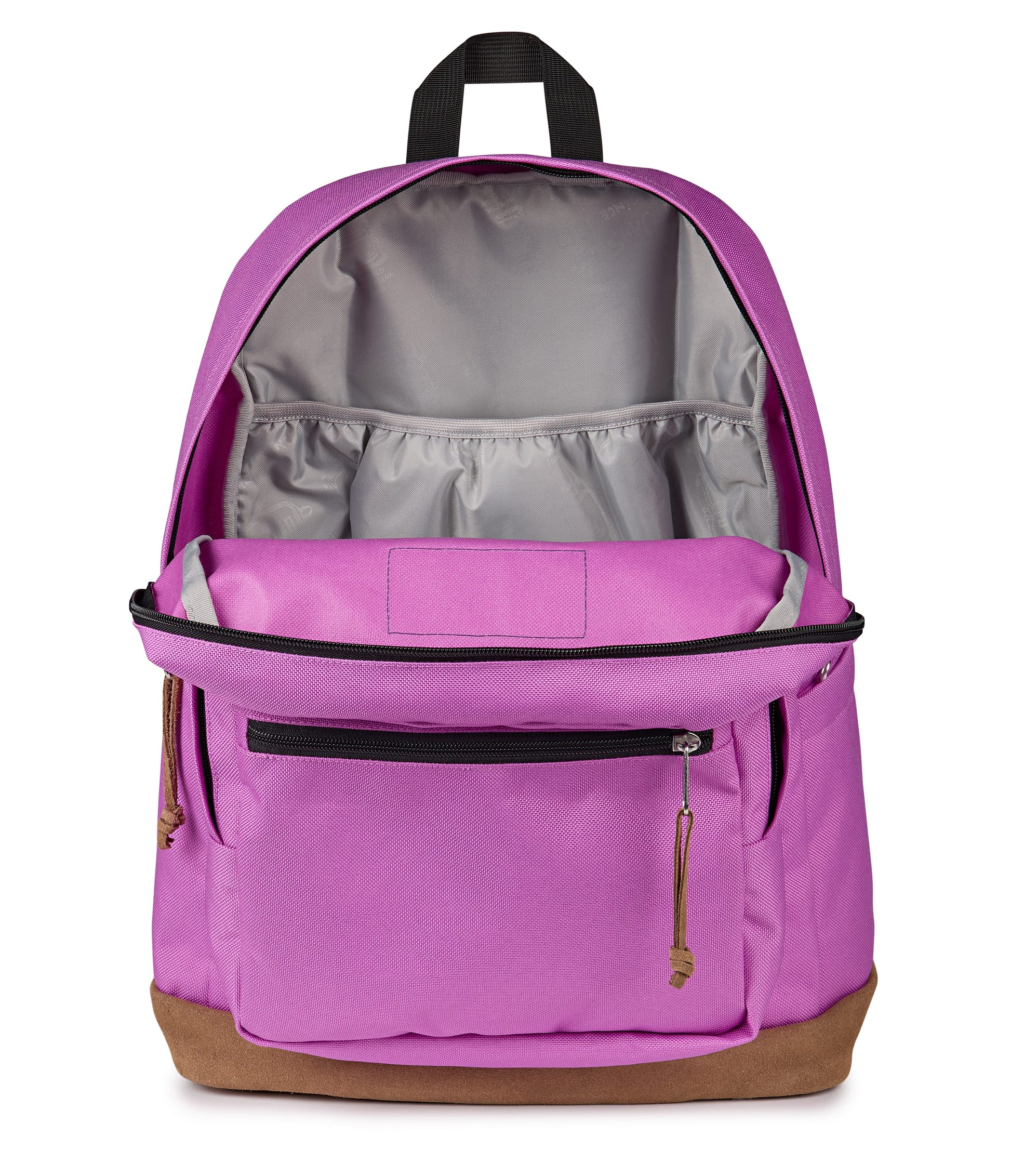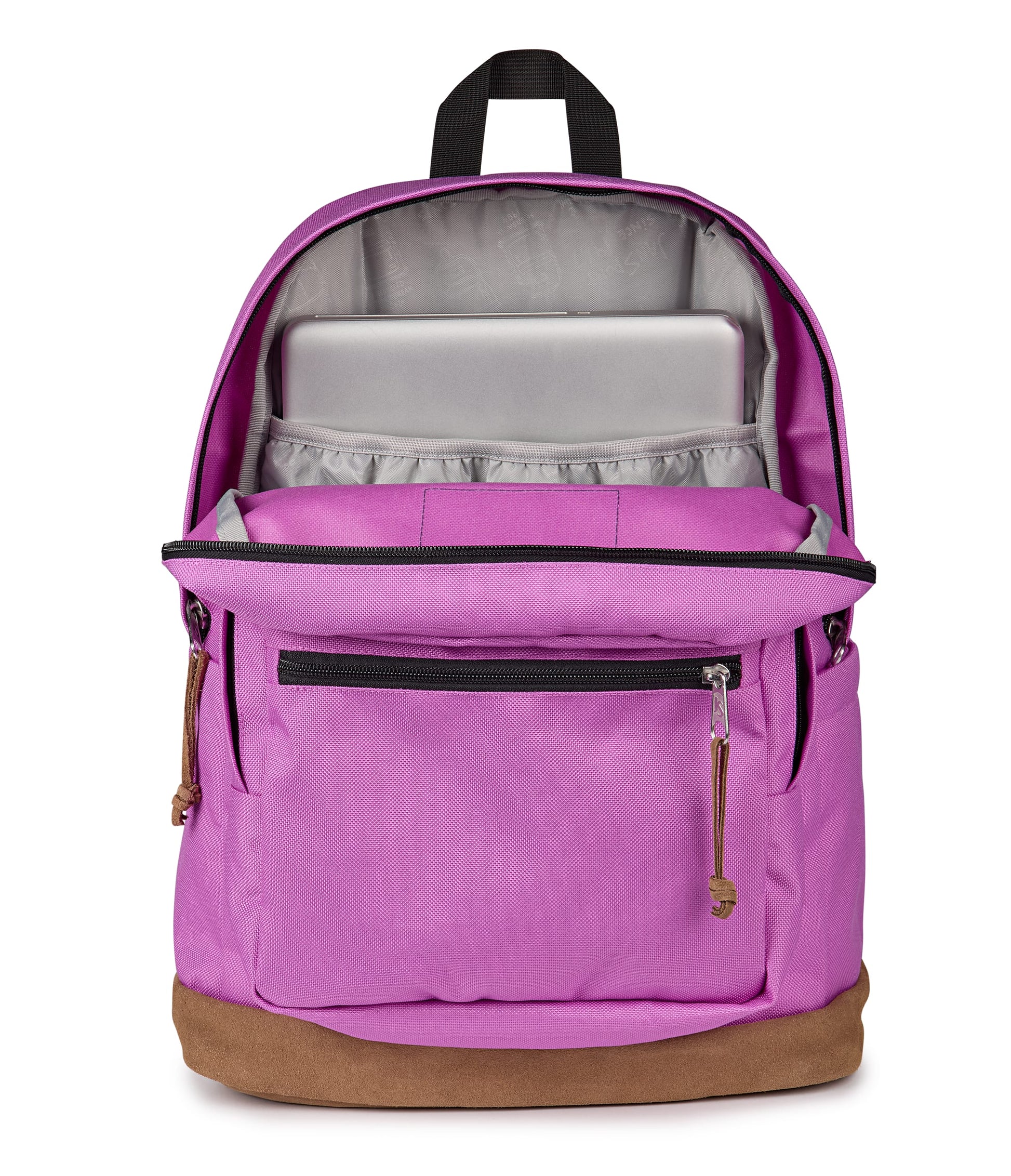 - Suede zipper pulls add premium detail and ease of use
