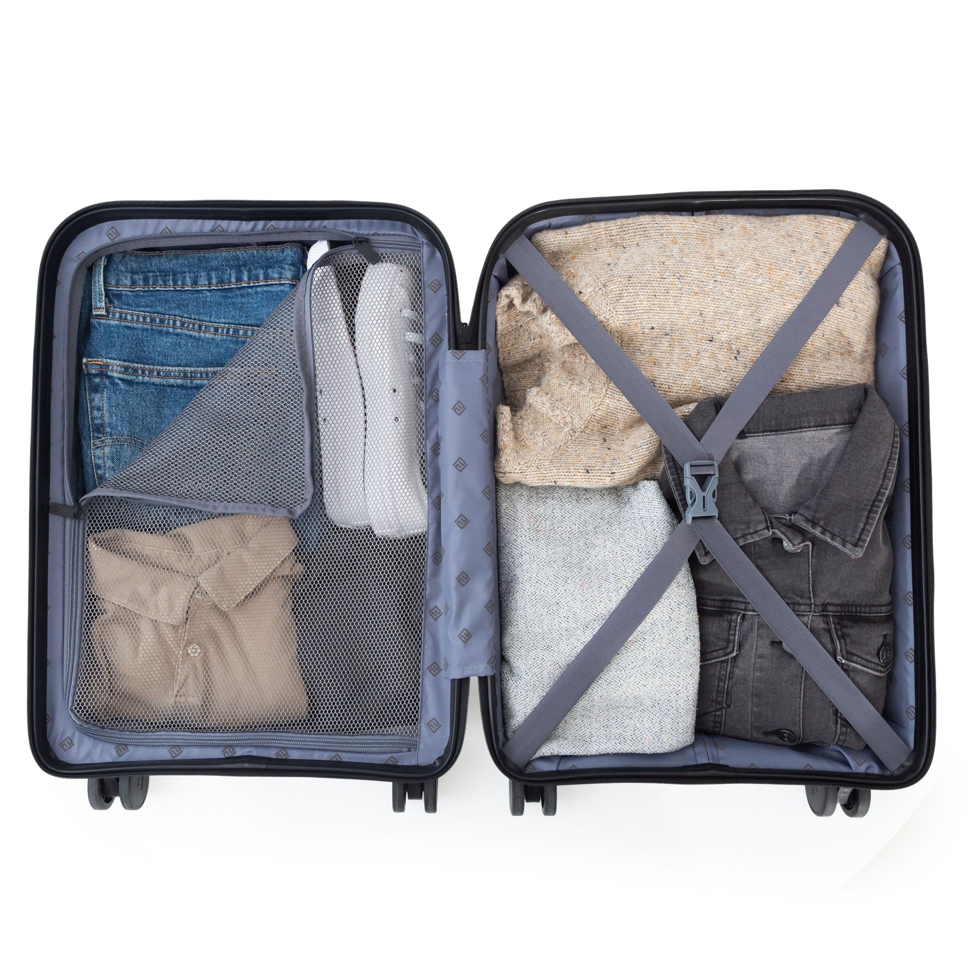- Fully lined interior includes a zippered mesh divider and compression straps
