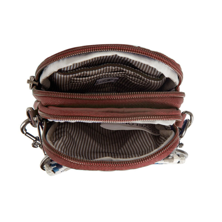 Travelon Boho Sac à bandoulière pour téléphone à 2 compartiments anti-vol - Geo Paprika