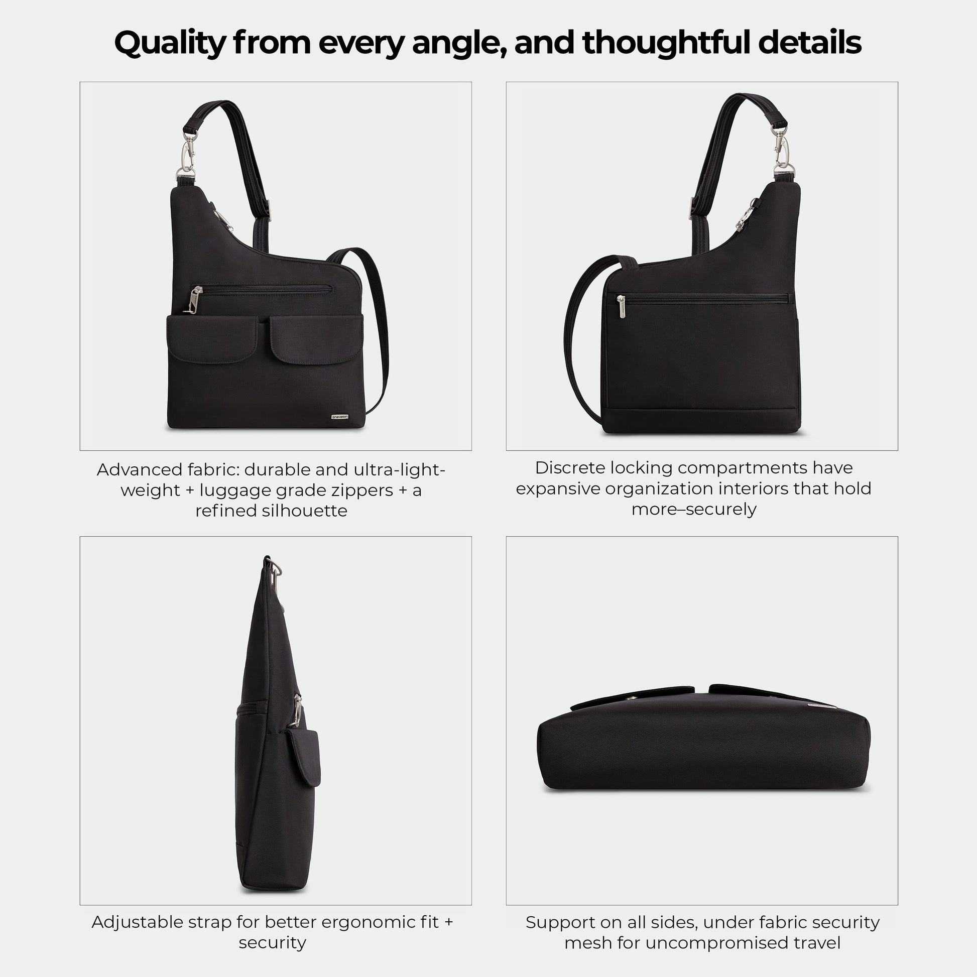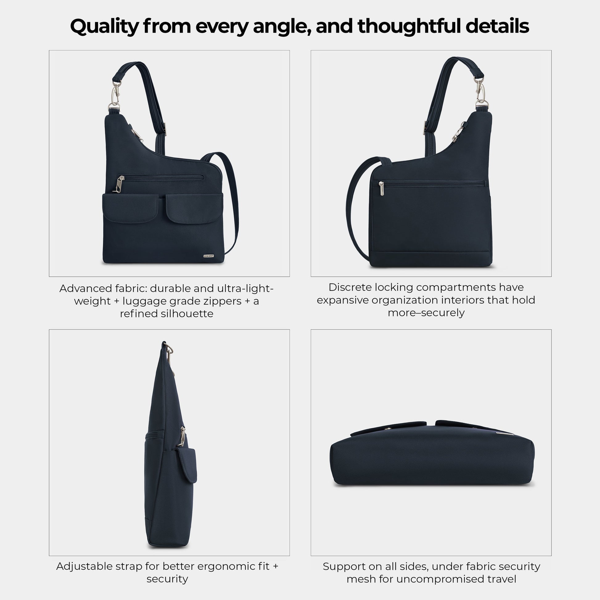Tried and true, no other travel bag or Anti-Theft bag collection enjoys the level of loyalty Travelon Classic does. From timeless and versatile design, colors that pair with any wardrobe, quality materials and craftsmanship, renowned security features and thoughtful organization. The Classic Messenger will carry and keep more items organized than everyday bags. This durable bag features Travelon’s patented Anti-Theft security system to protect you from pickpockets and thieves. It includes a slash-resistant mesh inner lining in all 4 sides and bottom body panels; slash-resistant strap; locking compartments; and RFID blocking organizer for credit cards, passport and other sensitive information you are carrying. Travel with style and security.