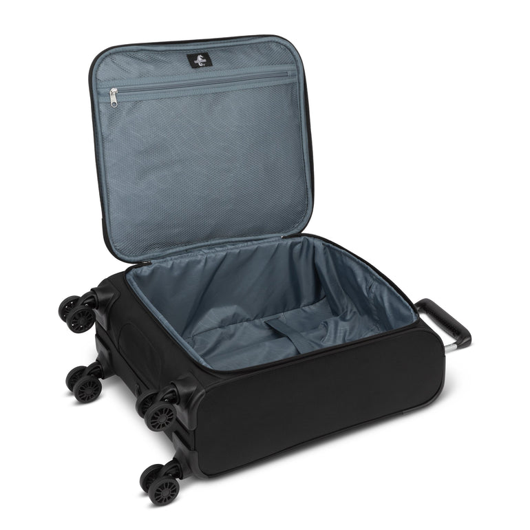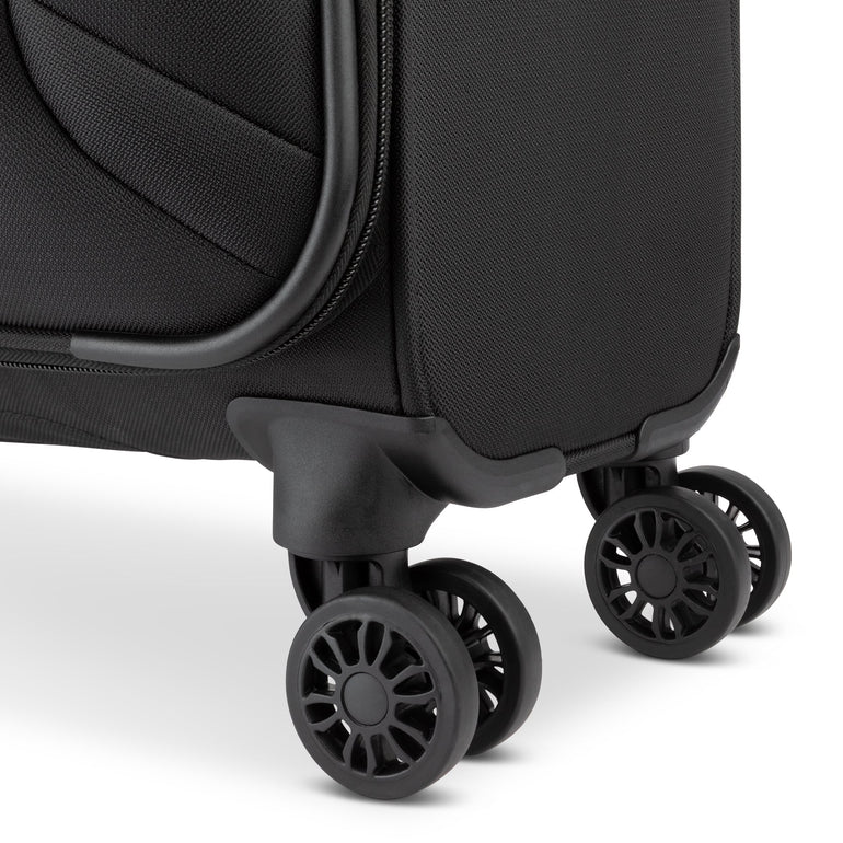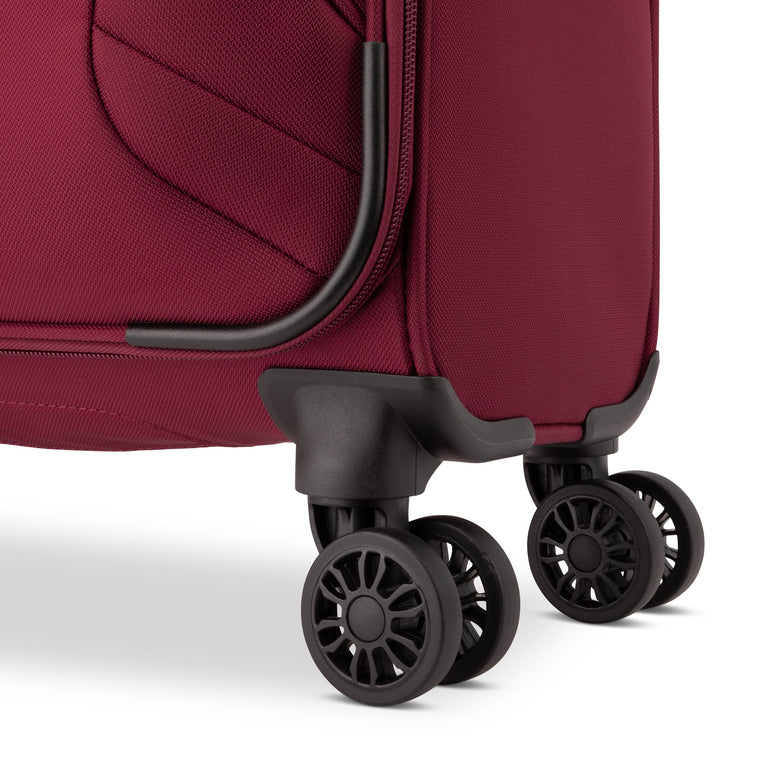 - "Spin 360" 8-wheel system allows suitcase to move easily in all directions