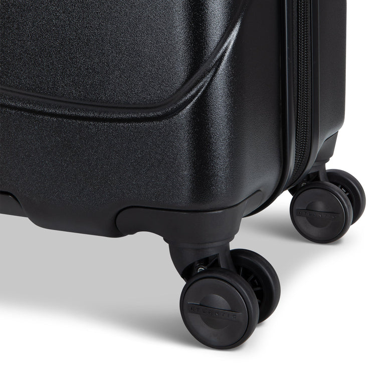 - Eight 360-degree spinner wheels allow suitcase to move easily in all directions