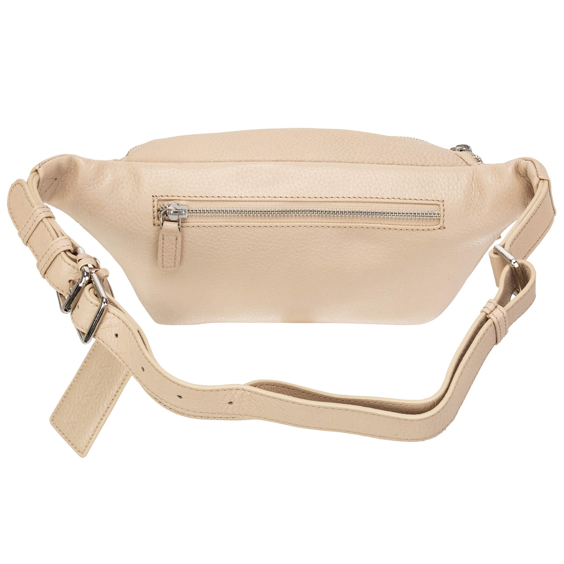 This waist bag features a front zippered pocket, one main compartment and a rear pocket to keep your personal items organized and secure.