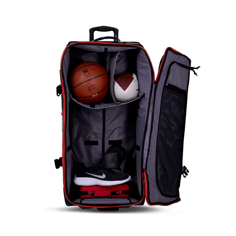 Meet the Rig ST Travel Bag, your mobile locker room. With our most advanced SLED technology yet, this travel bag is built with ultimate protection. Featuring a large interior pocket with modular organization and movable dividers to store your larger equipment. For smaller equipment and accessories, store in a spacious mesh pocket with breathability. Exterior organization features pockets for water bottles, nutrition, valuables and even a specialized pocket for bats, sticks and more. Equipped with quiet roll wheels designed to reduce drag on any surface and create a more stable footing.
