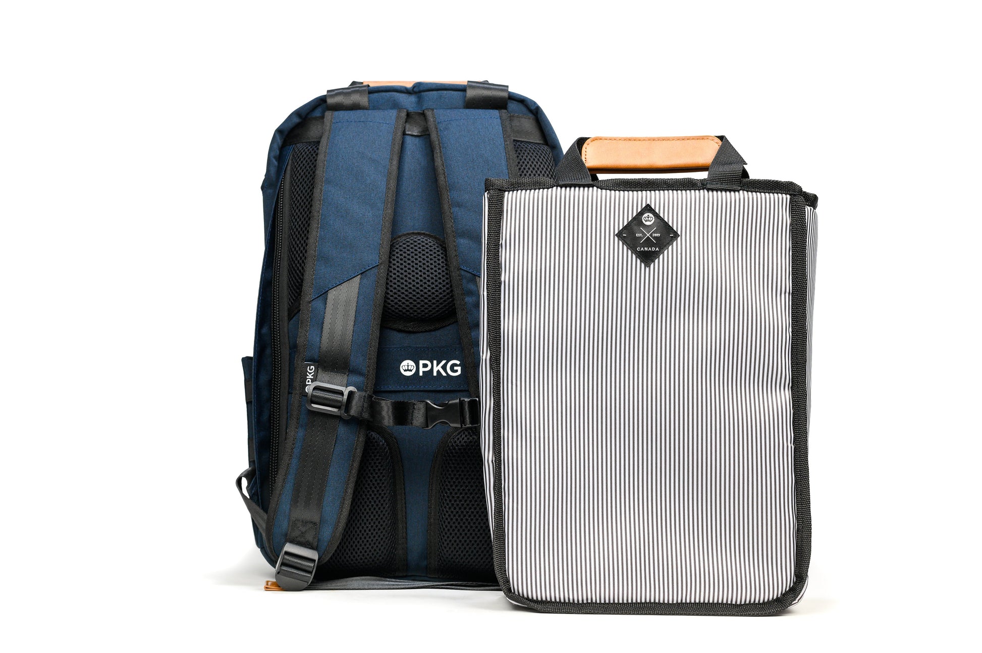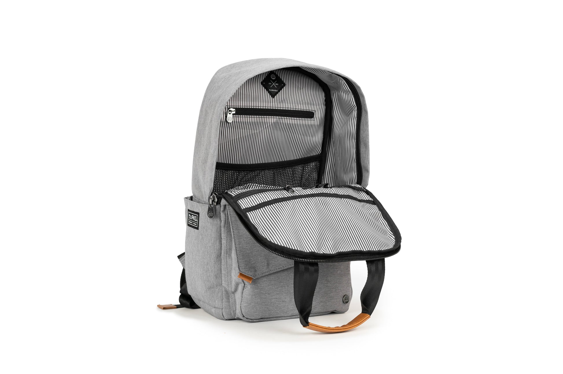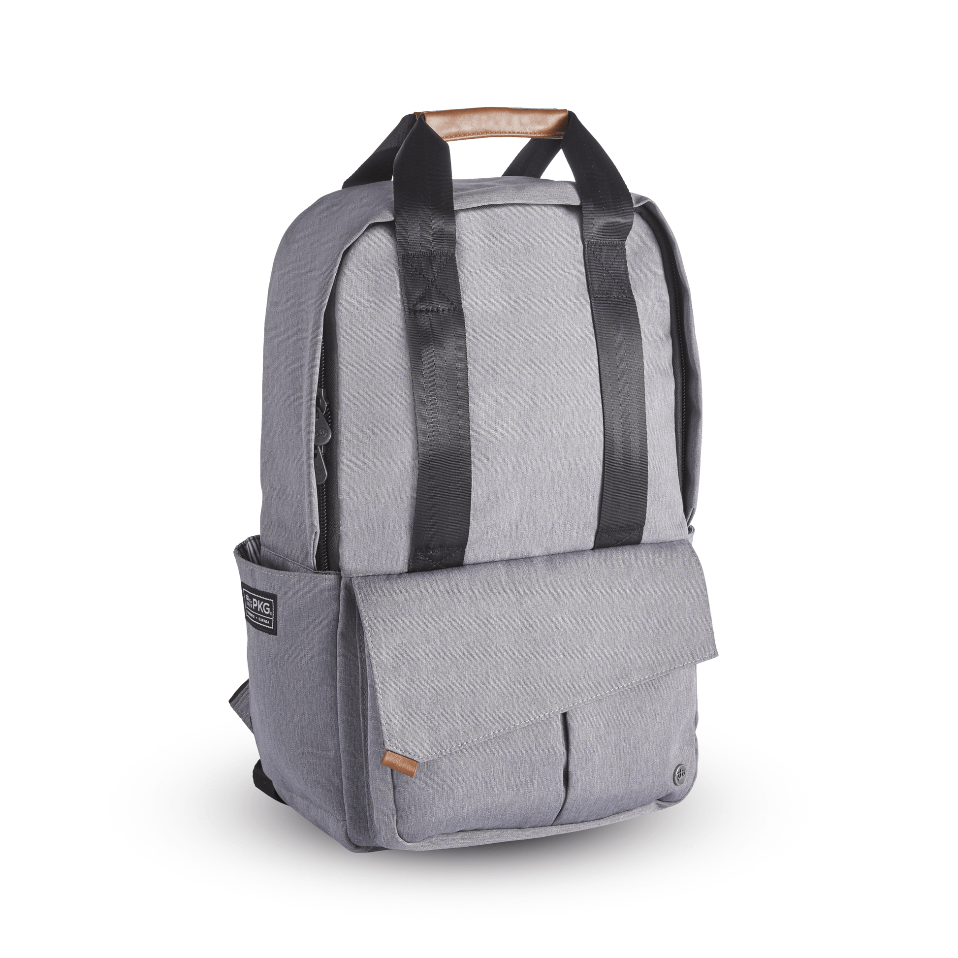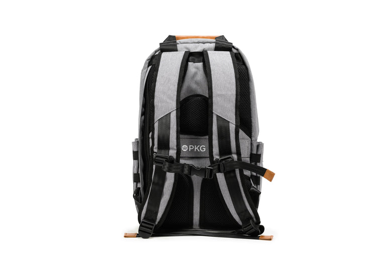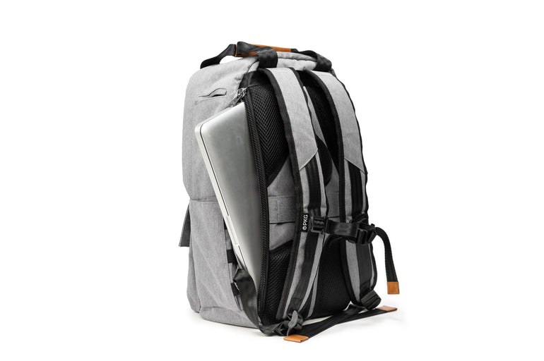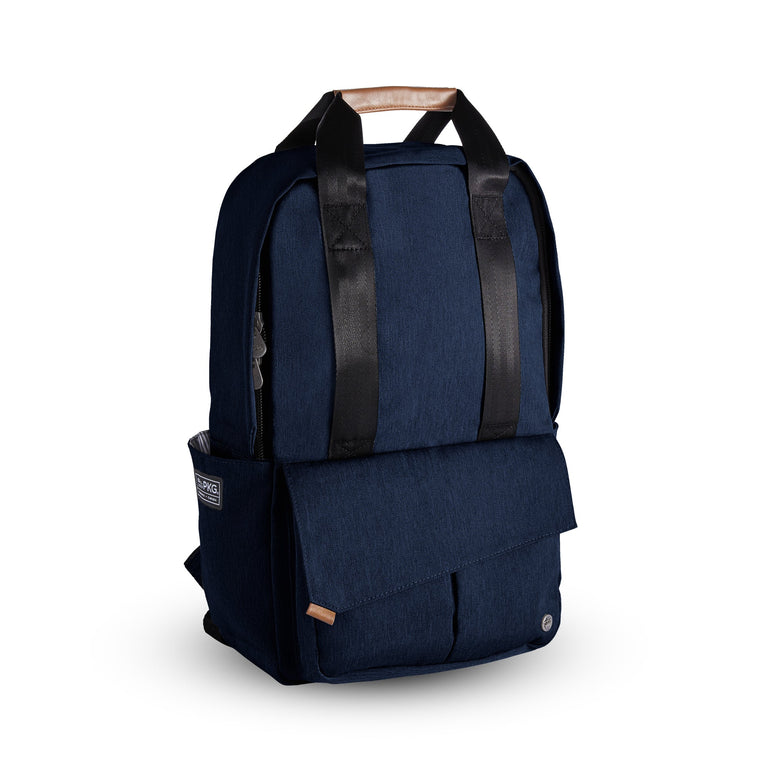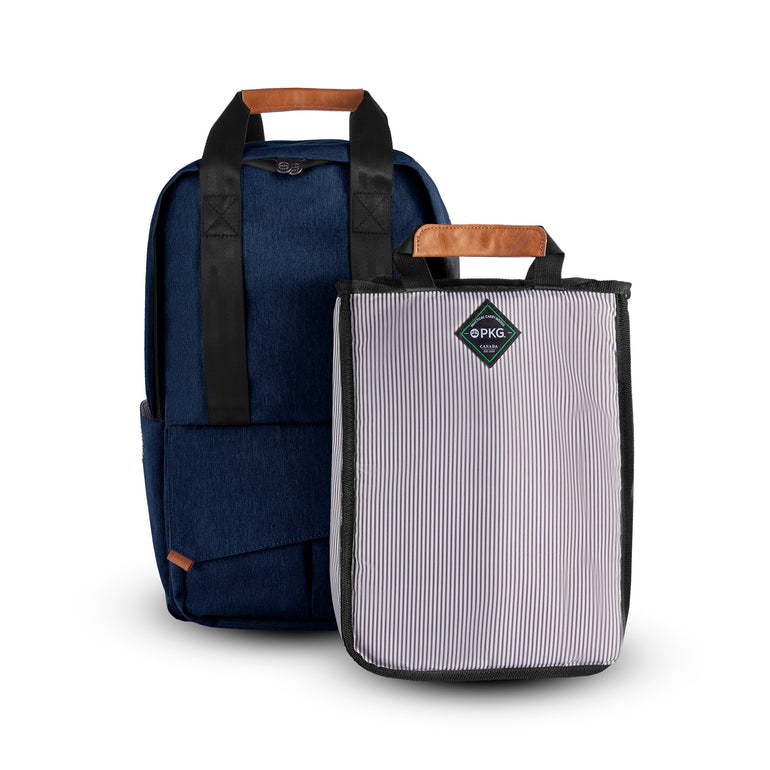 The PKG Rosseau 19L recycled front-load backpack tote is another PKG original design and is loaded with features. Hidden magnets on the front zippered pocket fold-over flap and the top tote handles, keep the clean, simplistic aesthetic without compromising functionality. Made from weather-resistant, recycled 600D polyester outer fabric and a recycled 210D satin polyester inner fabric. All your gear is well protected and water-resistant pressure rated up to 3500mm. The Rosseau uses 61 post-consumer recycled water bottles that make up the yarn for the interior and exterior fabric. Includes our signature removable organizational tote so you can seamlessly transition from weekday to weekend.
