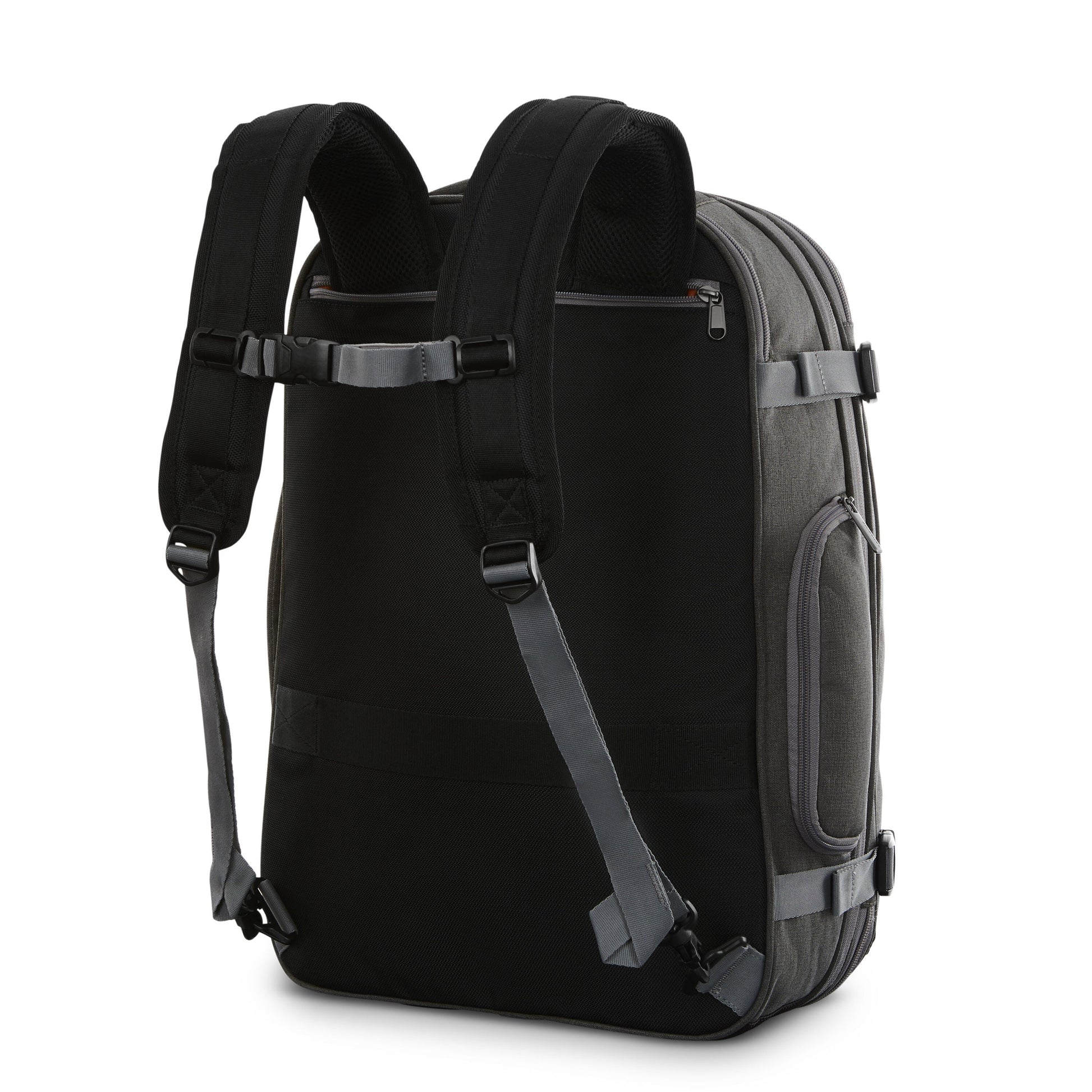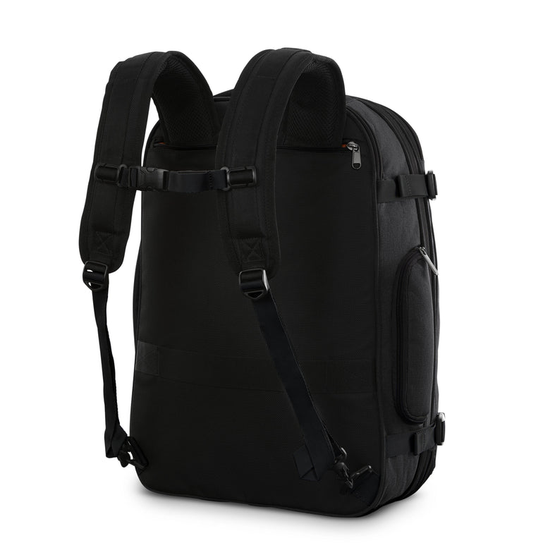 • Hidden backpack straps tuck away when not in use