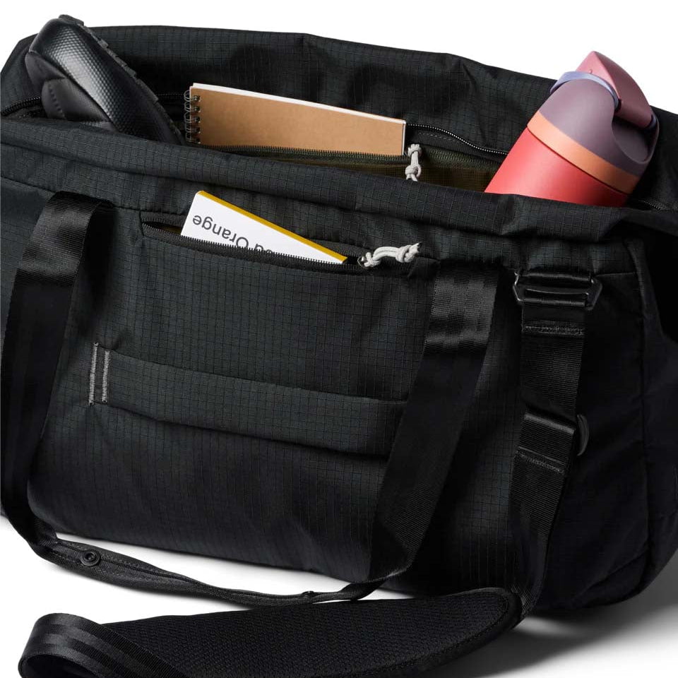 Desert trips or city living, the Viaje 35L Travel Duffel fits all the essentials for a weekend getaway. Built with durable recycled polyester fabric, the Viaje features plenty of easy-access pockets, a laptop sleeve, and a spacious main compartment. There's also a luggage pass-through strap on one side, so you can slide it over your roller for smooth airport cruising.